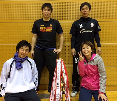 11月7日、菊池市体育センターで開催の北宮杯。今大会は変化球ありの変則ルール。優勝は変化球サーブを駆使したラビットZ。